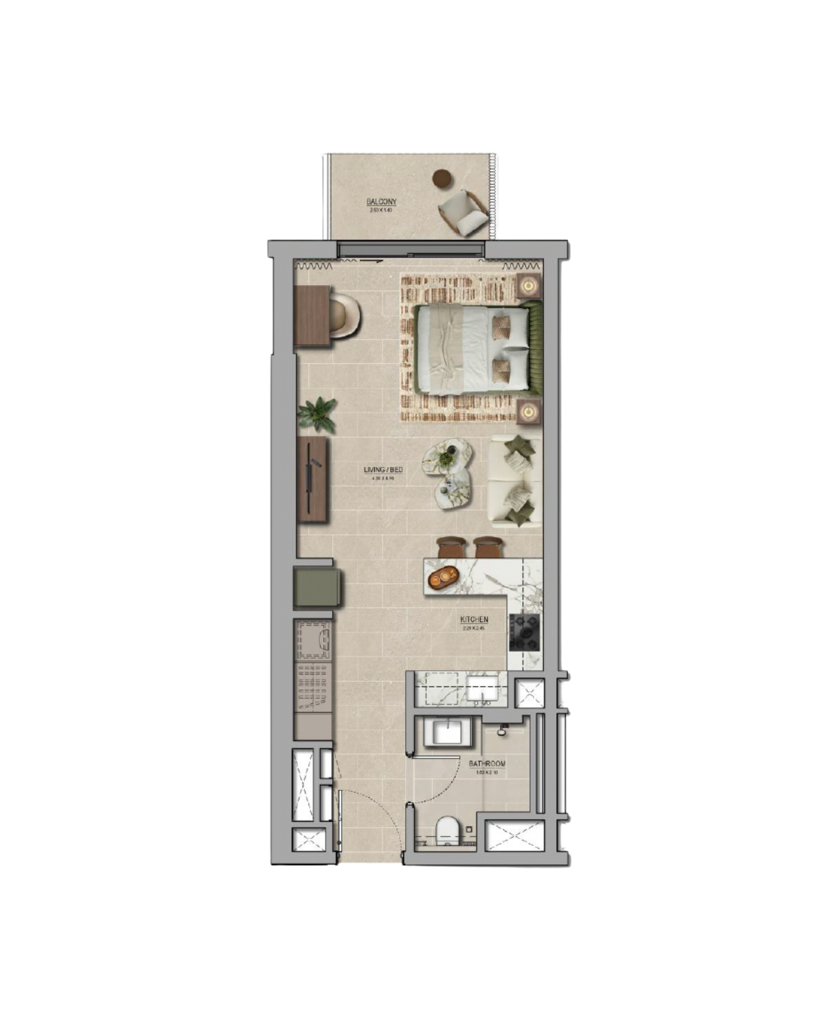 The development offers a limited collection of Studios, 1, 2, and 3-bedroom apartments, as well as exclusive 2-bedroom duplexes.