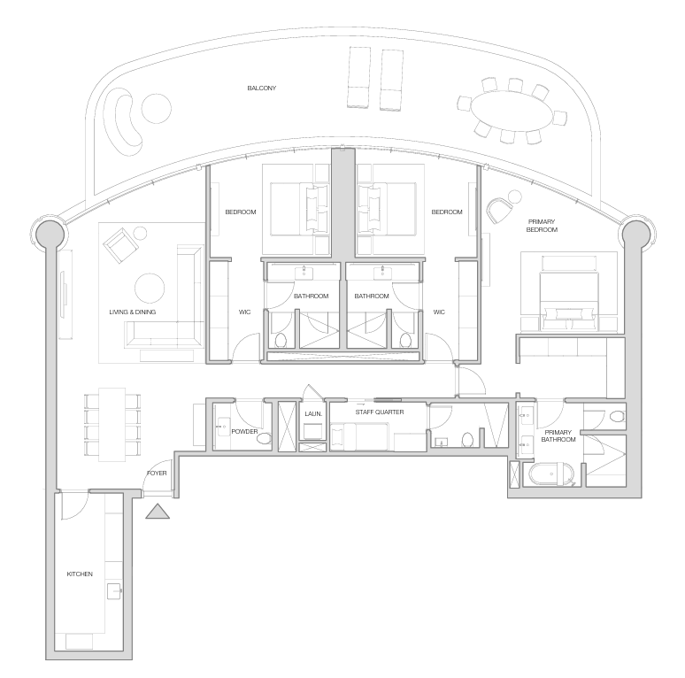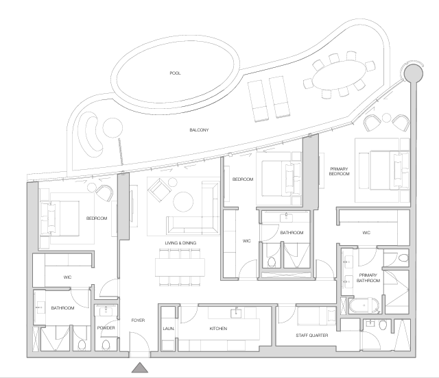 The project comprises a limited collection of 165 residences across four low-rise towers, offering two-, three-, and four-bedroom layouts. Homes feature expansive internal spaces, floor-to-ceiling windows, ceiling heights up to four metres, and landscaped outdoor terraces. Select ground residences include private gardens and plunge pools, while penthouses feature wraparound terraces with private pools. Interiors are delivered unfurnished, with high-end appliances, enclosed kitchens, maid rooms, and carefully curated finishes designed for long-term luxury living.