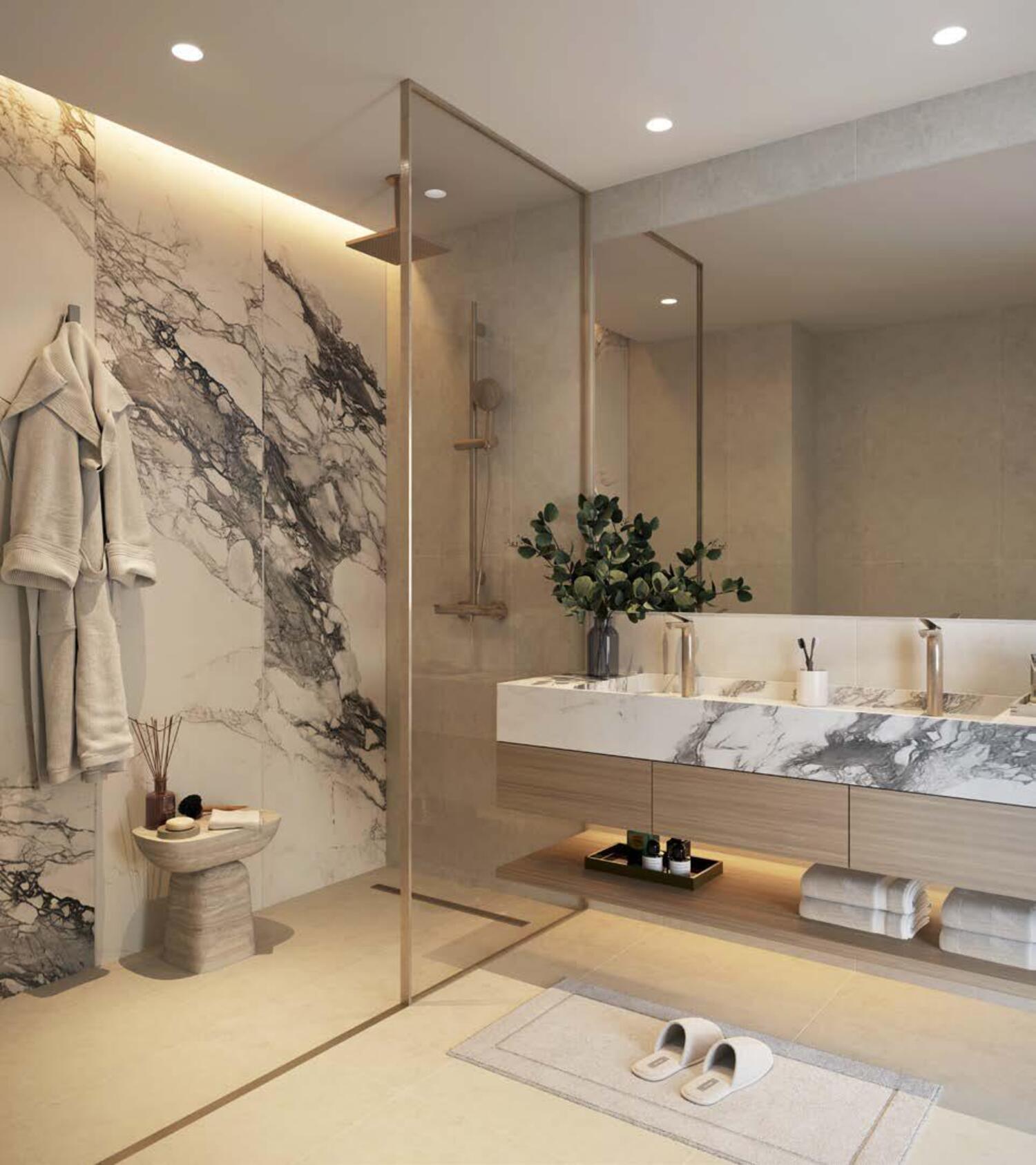 Architectural design mirrors the shoreline’s rhythm, using flowing spaces, Italian-branded kitchens, rain showers, and ambient lighting—appealing to lifestyle-driven buyers and future resale value.