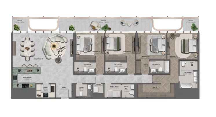 Hado offers one-, two-, and three-bedroom apartments, along with a limited collection of three-bedroom duplexes, four-bedroom duplexes, and selected four-bedroom simplex residences.
