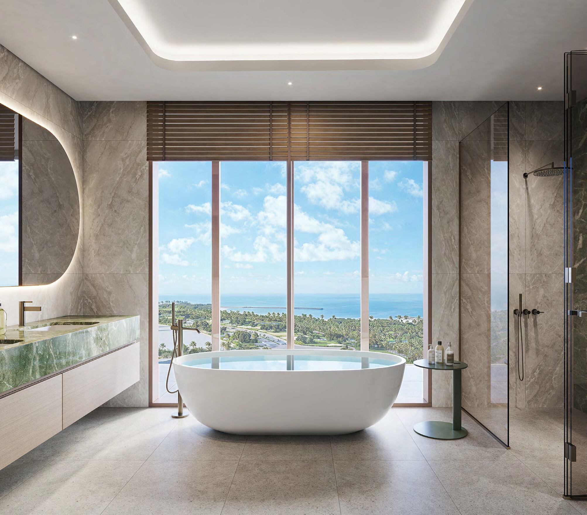 Hado offers a range of residential units including one-, two-, and three-bedroom apartments, as well as limited three- and four-bedroom duplexes and selected four-bedroom simplex homes. Residences feature floor-to-ceiling heights of approximately 3.2 metres, expansive glazing, and layouts designed to capture sea, cove, or city views.