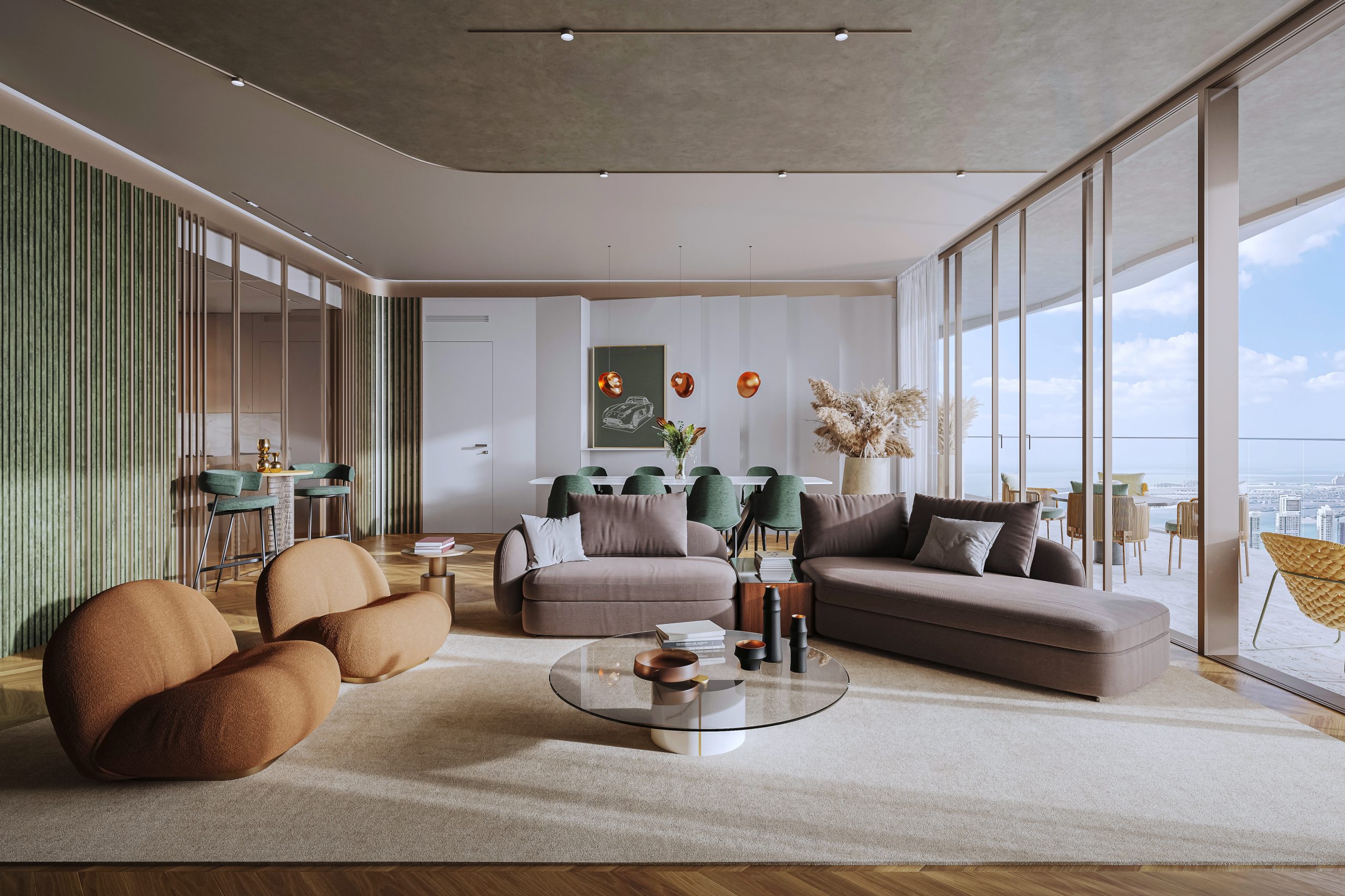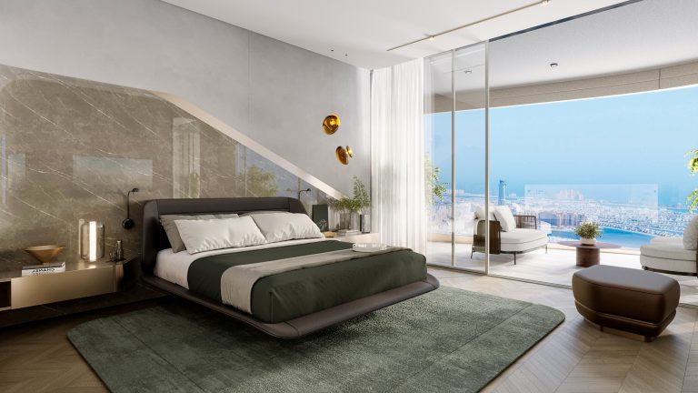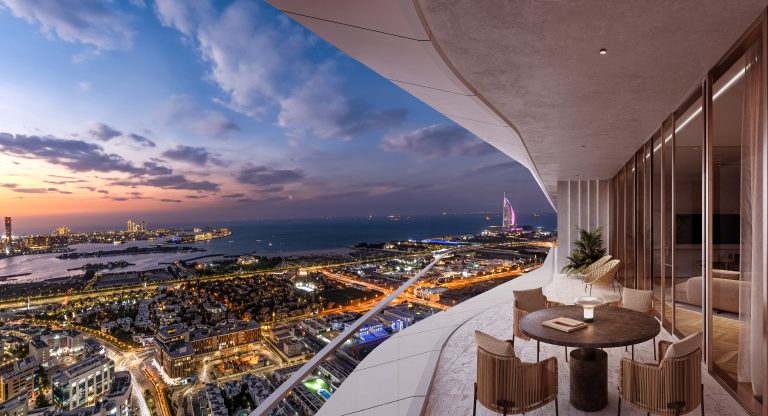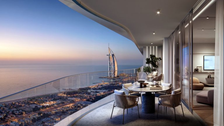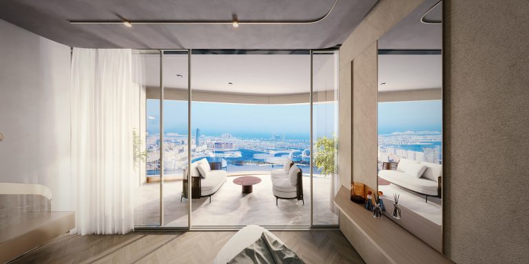 Iconic Residences offers an exceptional collection of one- to four-bedroom apartments as well as exclusive penthouses. The residences are defined by architecture and interiors authored by Pininfarina, featuring expansive balconies and terraces that frame spectacular seascape and landmark views of Palm Jumeirah and the Burj Al Arab. Interiors are crafted with premium wood and marble finishing, paired with advanced technologies such as multi-stage air filtration and water purification systems to ensure an elevated quality of life. Bathrooms are designed for ultimate comfort with heated floors, while living spaces offer the option of being fully furnished by Italian furniture masters Reflex. The tower’s G+66 layout ensures that every unit benefits from natural light and natural shapes inspired by sand dunes and sea waves.