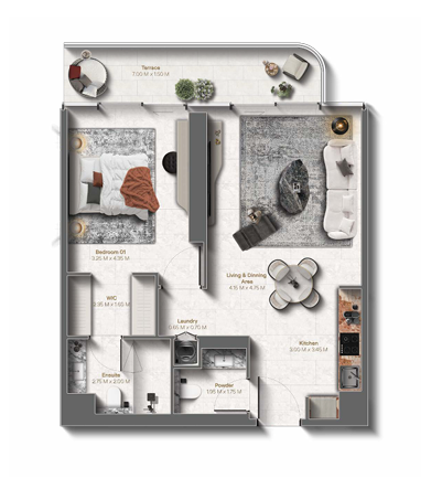 Prices for Le Château Residences start from approximately AED 2.15 million for a one-bedroom apartment. Two-bedroom residences start from around AED 3.30 million, two-bedroom apartments with maid’s rooms from about AED 3.90 million, and three-bedroom units from approximately AED 4.80 million.