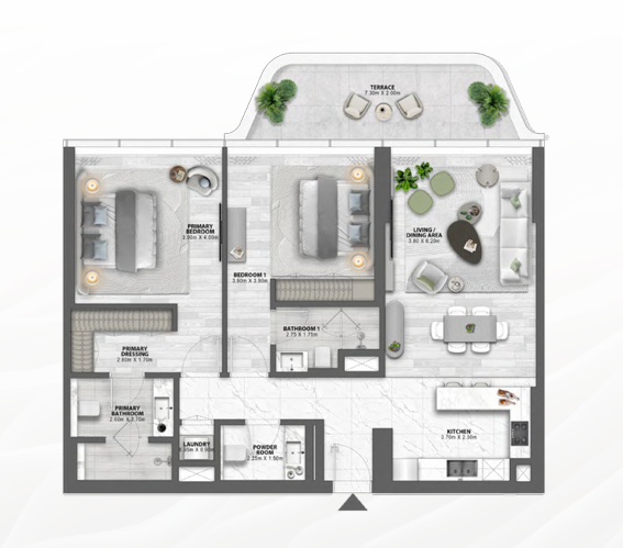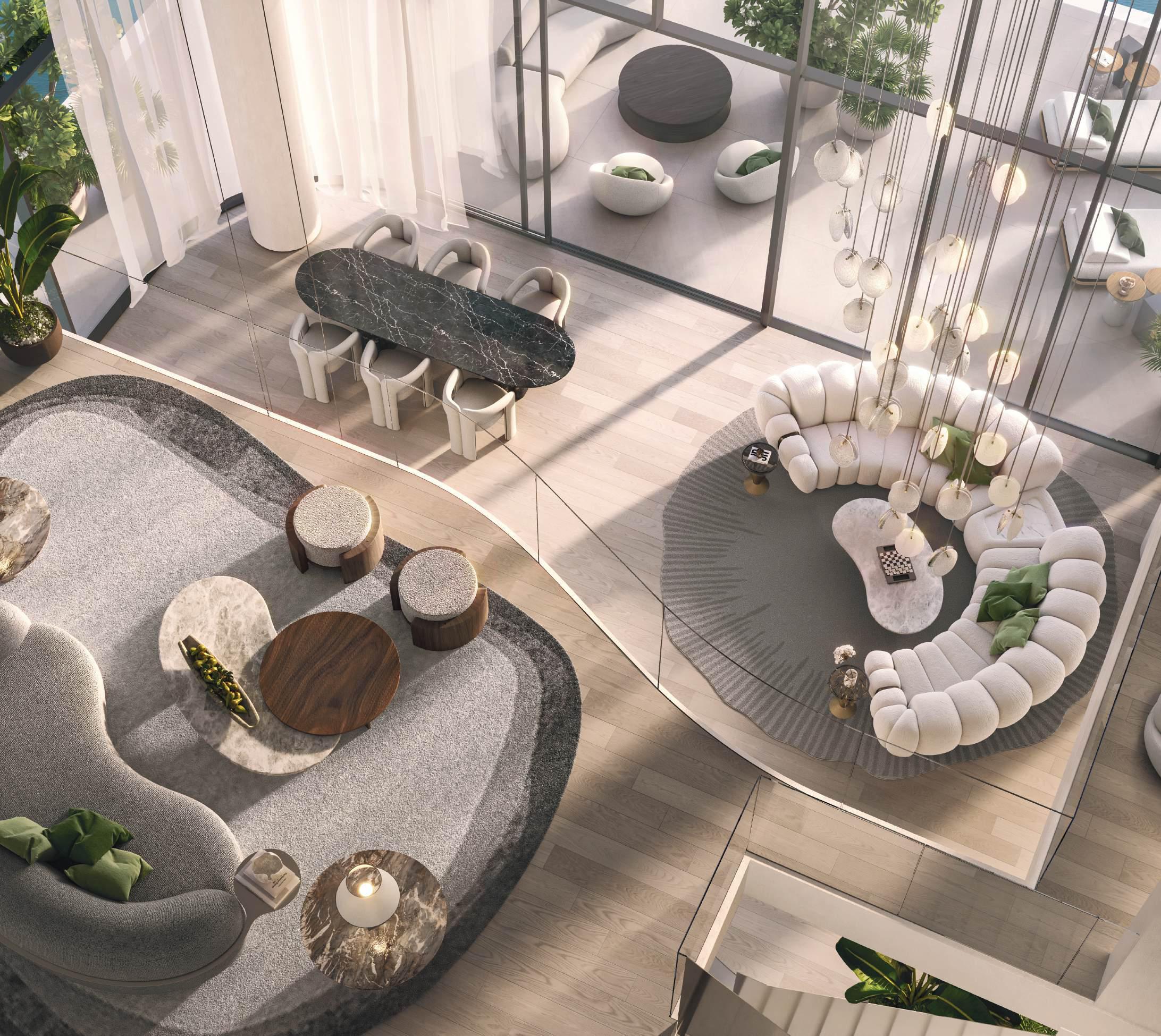 Passo by Beyond comprises 625 residences, including apartments, penthouses, and standalone beach mansions. Apartment layouts range from 1- to 4-bedroom configurations, while penthouses offer four- and five-bedroom layouts positioned on the highest floors. Six-bedroom beach mansions are designed as independent residences with direct beach access. Average apartment sizes start from approximately 940 sq ft, increasing across larger layouts. Interiors emphasise open-plan living, expansive glazing, high ceilings, and contemporary finishes designed to maximise light, views, and indoor-outdoor connectivity.